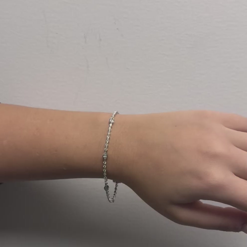 The unique interplay of diamond shapes adds dimension and brilliance, making it the perfect piece for effortless luxury. Whether worn alone for an understated statement or stacked with other favorites, this bracelet is designed to elevate any occasion.