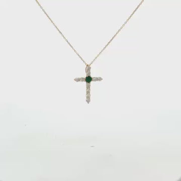 Diamonds and Emerald Cross Necklace (0.45 ct.) in 14K Gold