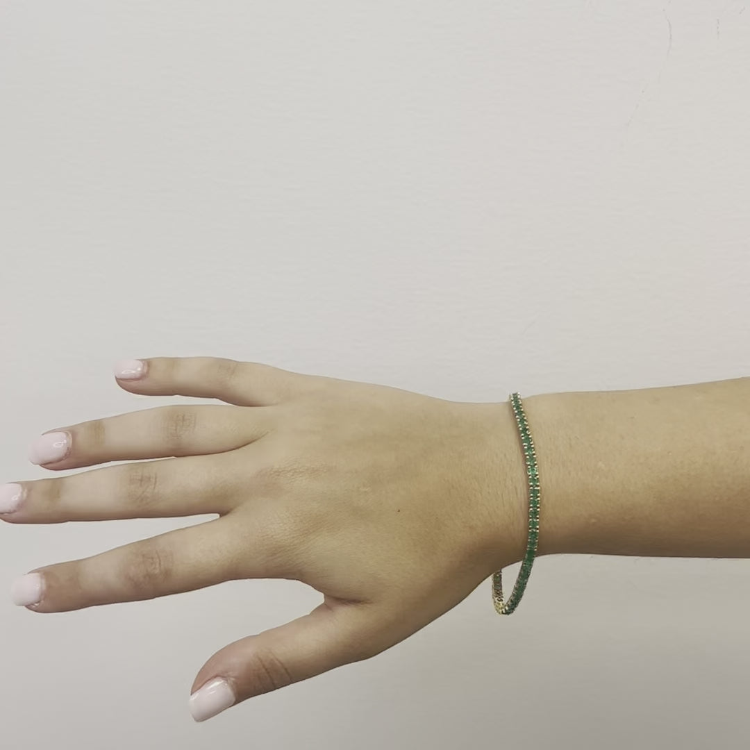 The Emerald Tennis Bracelet (5.35 ct.) with 4-Prong Setting in 14K Gold is a stunning piece of jewelry that will make any outfit look elegant and sophisticated. The bracelet is crafted from high-quality 14K gold, which provides a beautiful and classic backdrop for the vibrant green color of the emeralds.