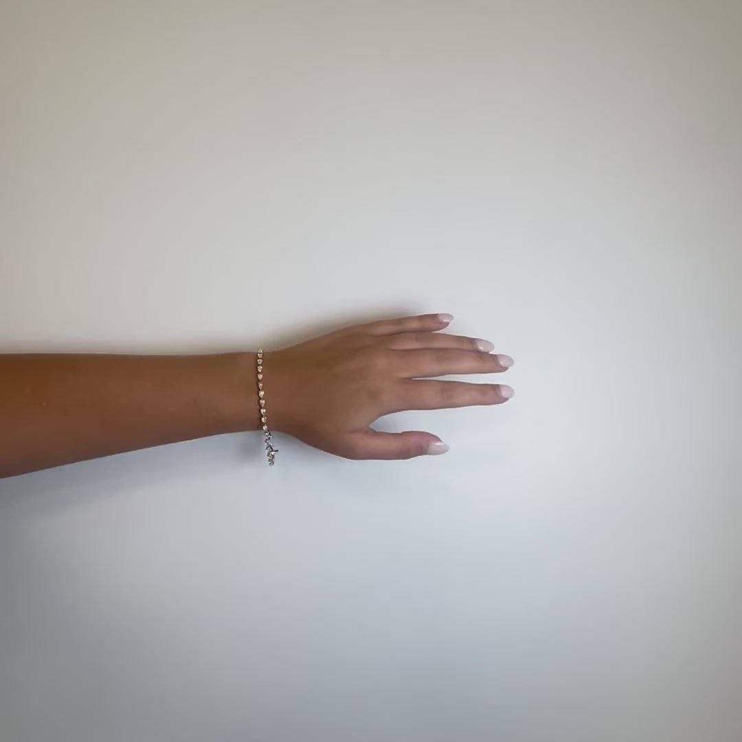 This tennis bracelet exudes sophistication and luxury, making it a perfect accessory for any special occasion or everyday glamour. Crafted with precision and attention to detail, it's a timeless piece that adds a touch of elegance and refinement to any ensemble.