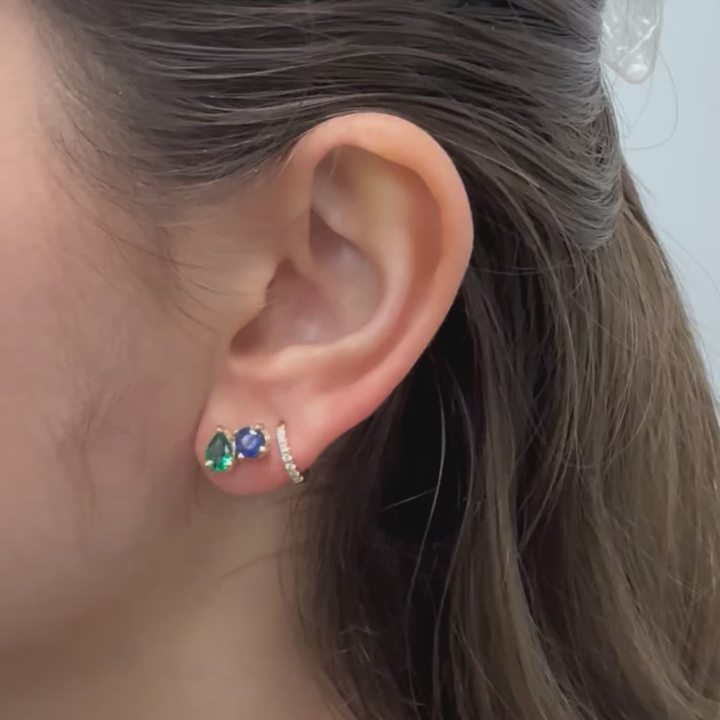 A modern twist on a romantic classic, the Capucelli Round Sapphire and Pear Emerald Toi et Moi Earrings celebrate the harmony of contrast and connection. Crafted in rich 14K yellow gold, each earring features a striking pairing of a brilliant round blue sapphire and a vivid pear-shaped emerald, totaling 2.00 carats.